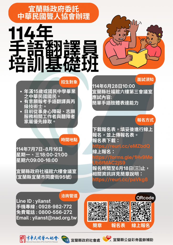 宜蘭縣114年度手語翻譯員培訓基礎班招生中 - 中華民國聾人協會