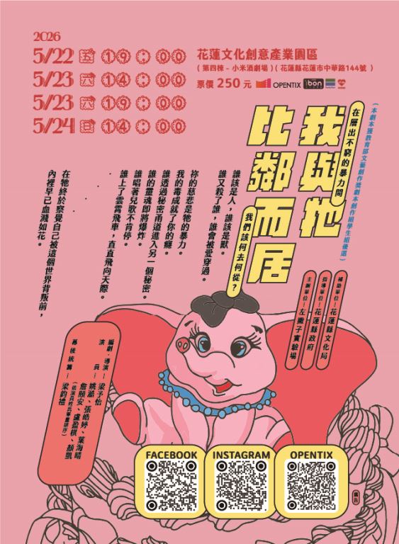演出地點:花蓮文化創意產業園區 -第4棟小米酒劇場指導單位:花蓮縣政府
