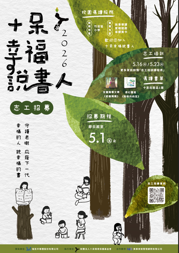 在瑞昱半導體的支持下,誠摯邀請有熱忱的你加入「十呆幸福說書人」志工的行列,以實際行動支持閱讀陪伴與環境教育,為下一代建立更深厚的自然關懷🌳