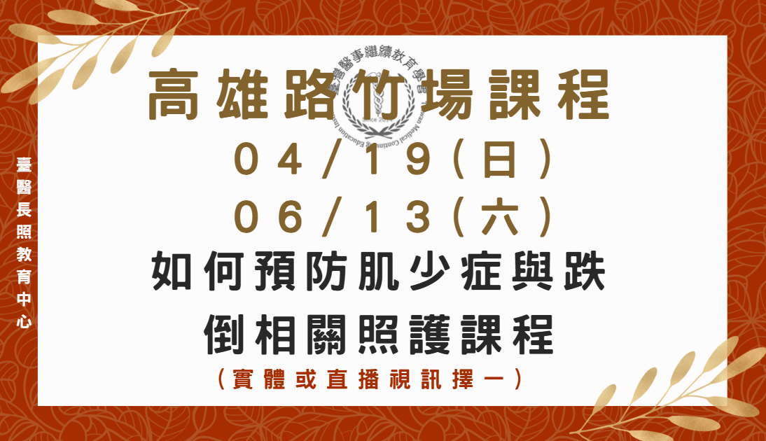 高雄路竹場 (實體+直播視訊) :如何預防肌少症與跌倒相關照護課程 4/19、6/13