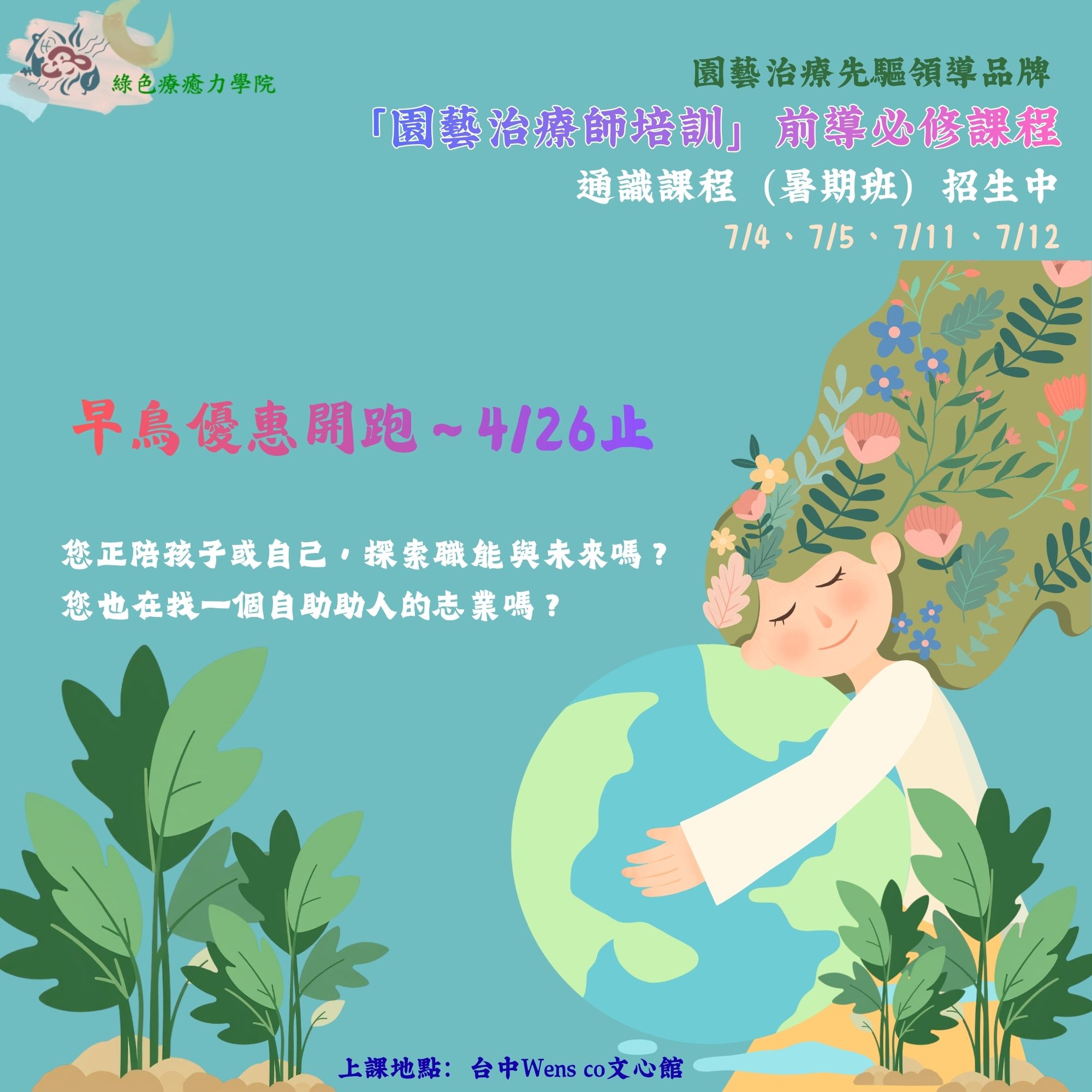👉2026年園藝治療師培訓課預計於7/25開課,今年僅此一班。
